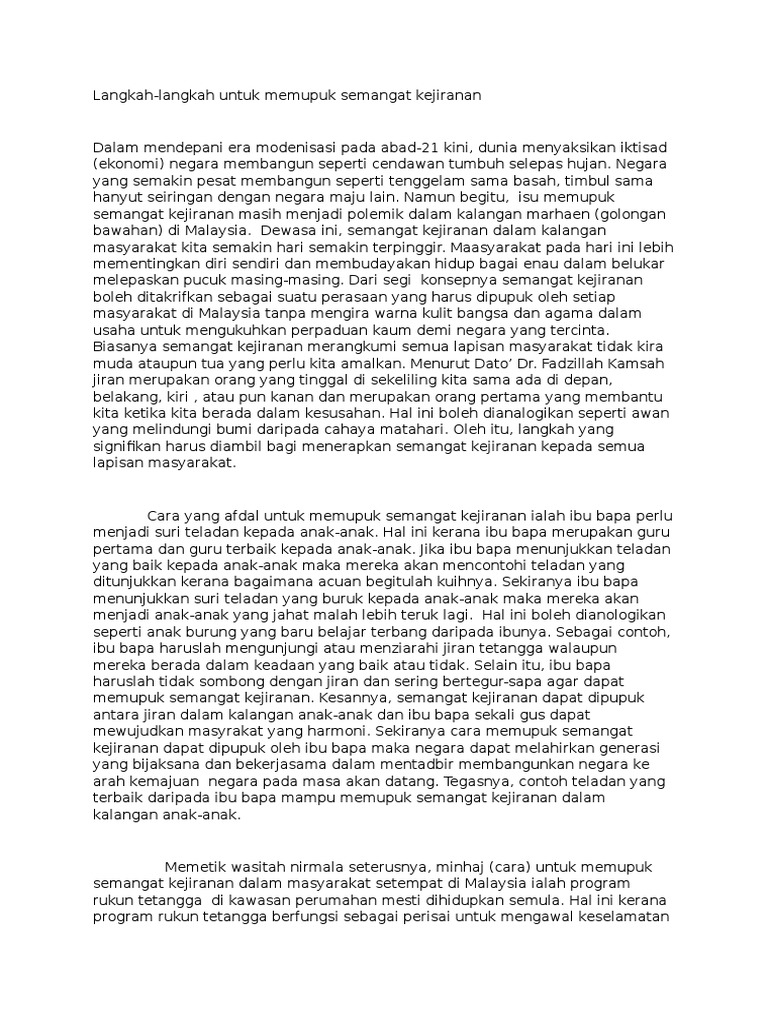 Karangan Langkah Langkah Memupuk Semangat Kejiranan