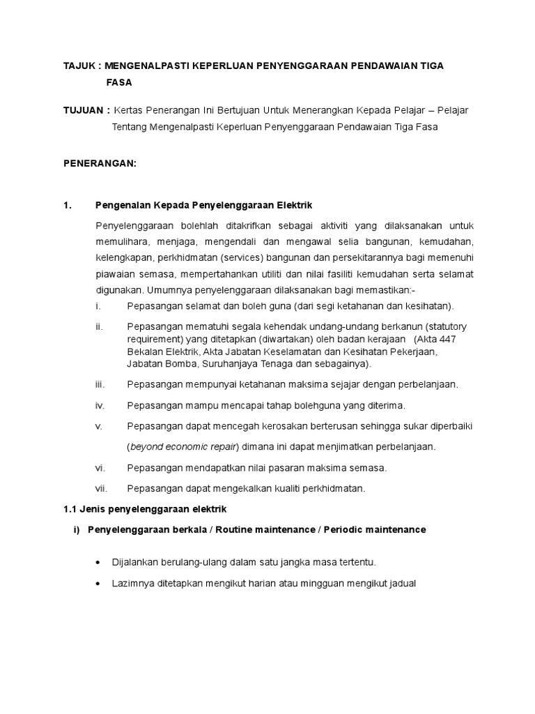 Penyenggaraan Pendawaian Tiga Fasa