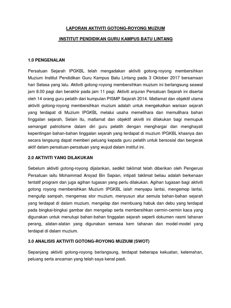 Laporan Aktiviti Gotong Royong Muzium Docx