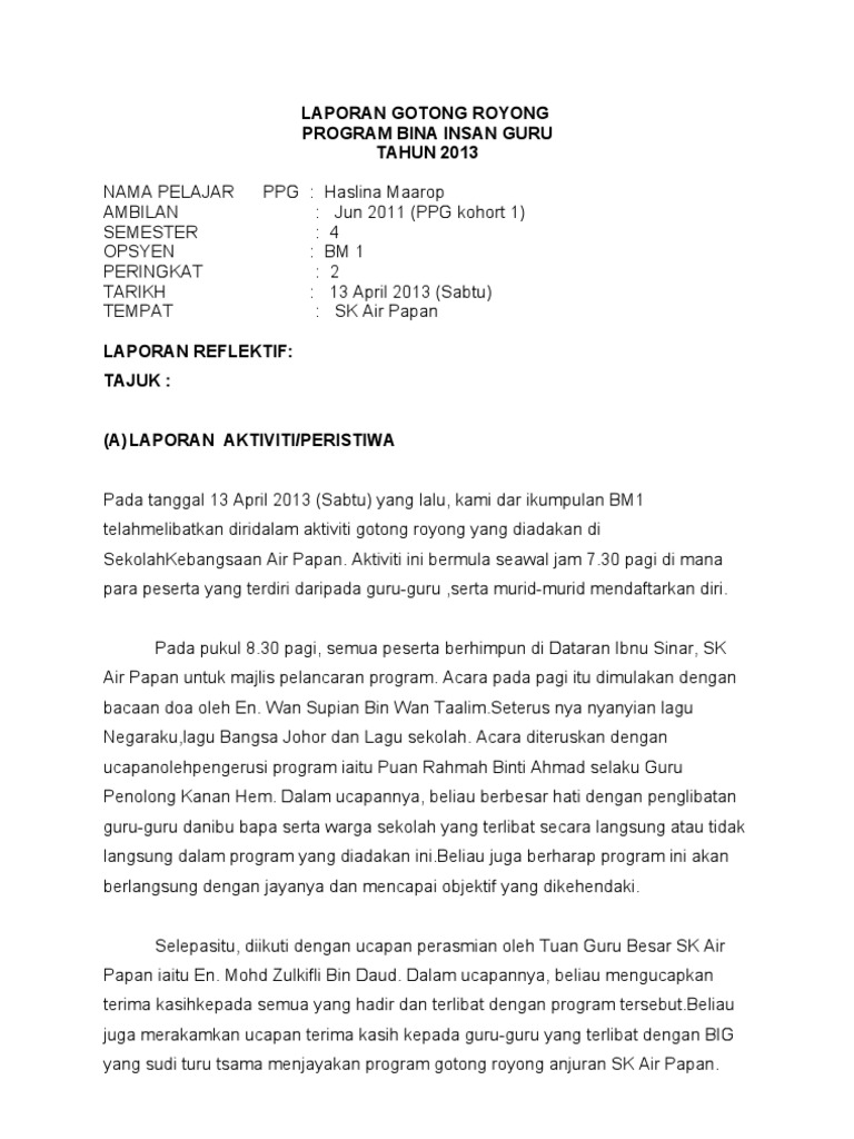 Doc Laporan Reflektif Gotongroyong Ldp Afzan Ahmad Academia Edu