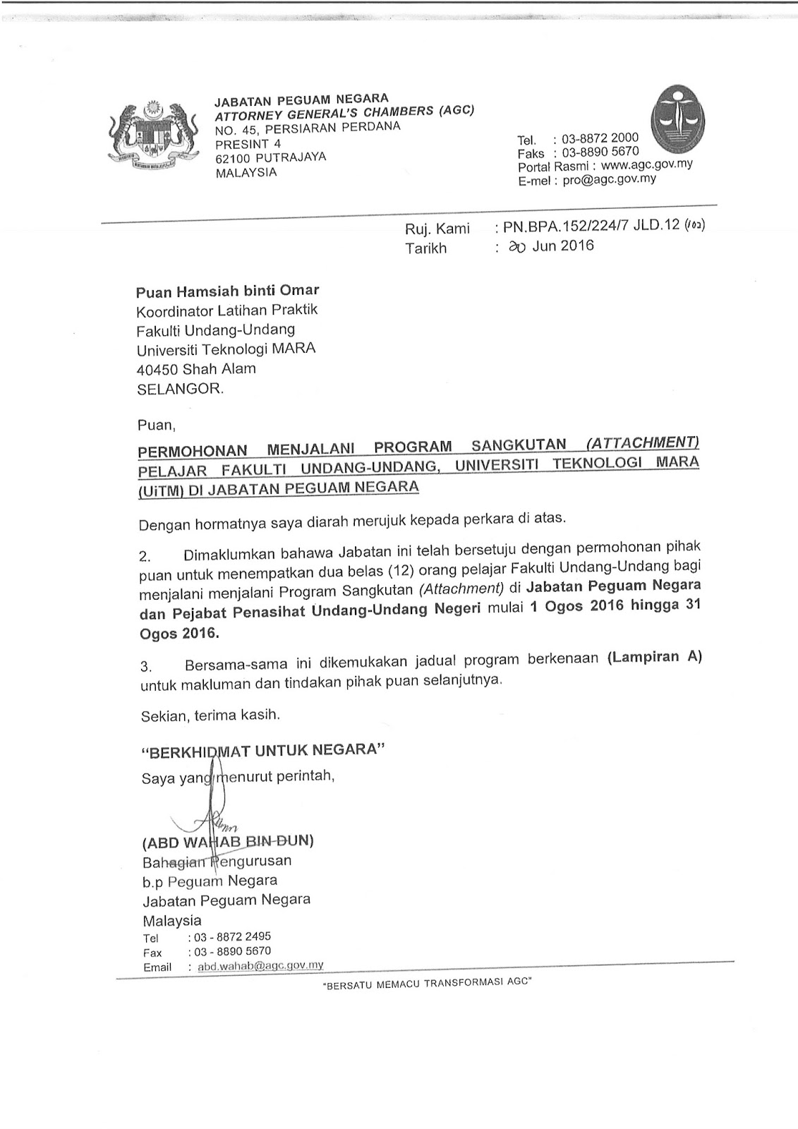 Latihan Industri Fuu Surat Penerimaan Latihan Industri Daripada Jabatan Peguam Negara Ag