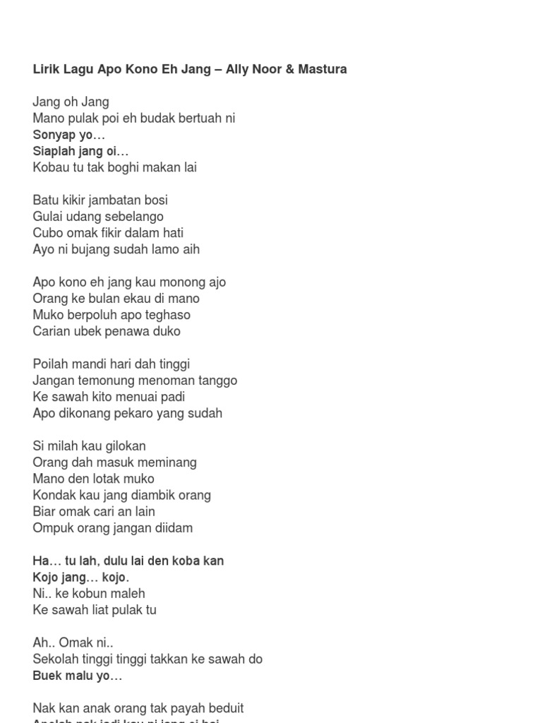 Lirik Lagu Apo Kono Eh Jang