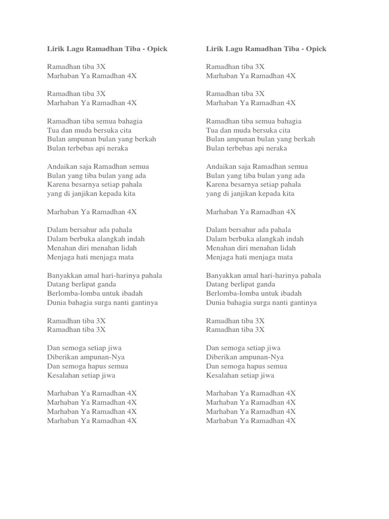 Lirik Lagu Ramadhan Tiba
