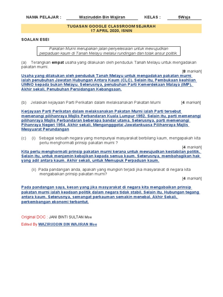 Pakatan Murni Merupakan Jalan Penyelesaian Untuk Mewujudkan Perpaduan Kaum Di Tanah Melayu Melalui Rundingan Dan Tolak Ansur Politik