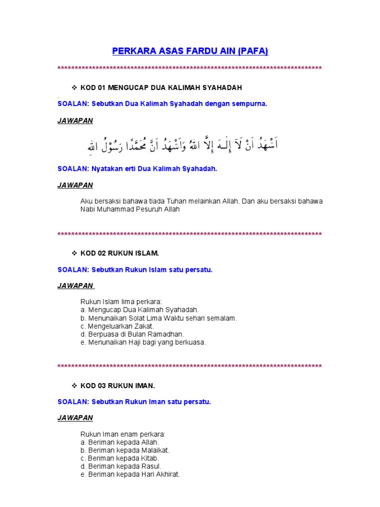 Perkara Asas Fardu Ain Pafa Kod 01 Mengucap Dua Kalimah Syahadah