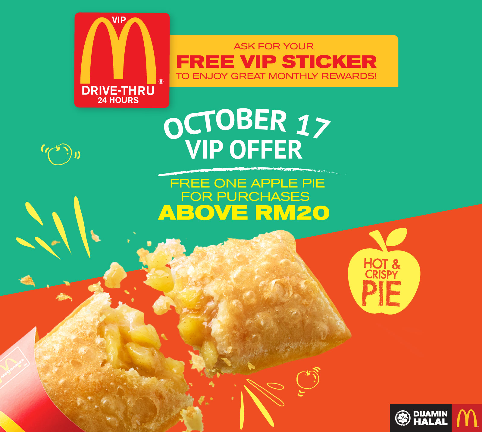 Mcd Drive Thru Vip Free Apple Pie Minimum Purchase Rm20 Until 31 October 2017