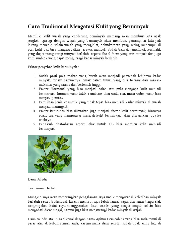 Cara Tradisional Mengatasi Kulit Yang Berminyak