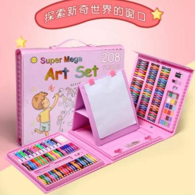 Super Mega Art Set 208pcs Alat Gambar Alat Lukis Anak Free Bubble Wrap Kardus Untuk Packing Shopee Indonesia