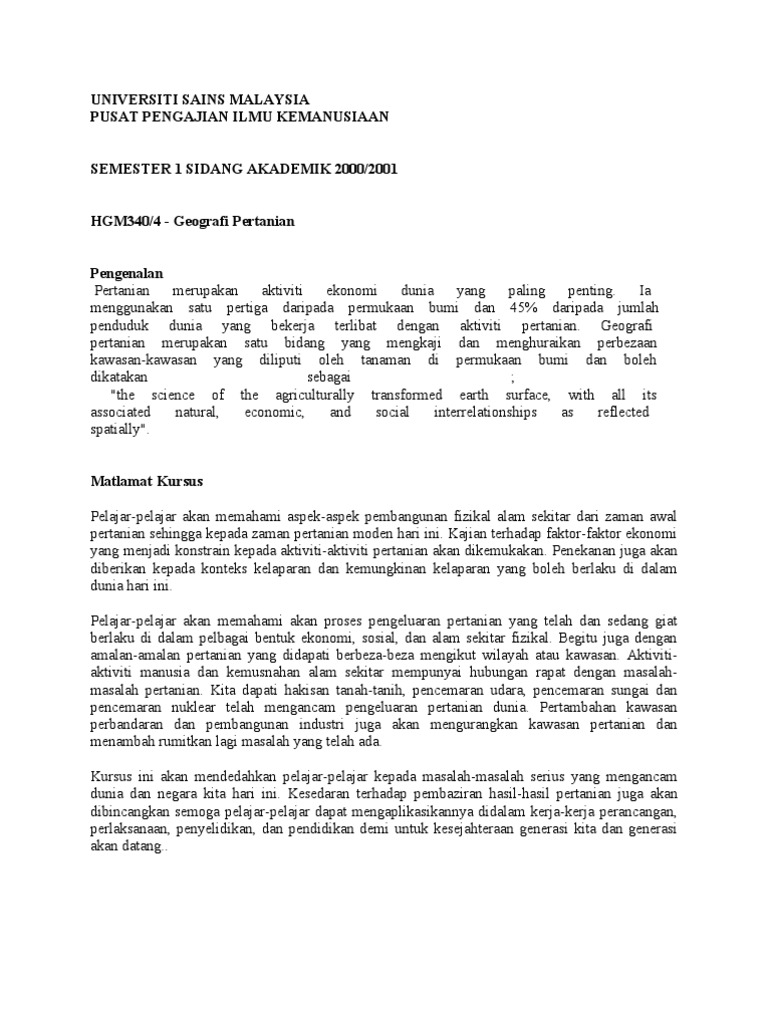 Contoh Rangka Pengajian Geografi Usm