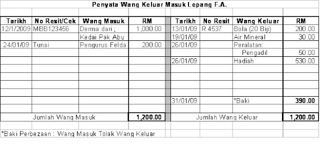 Merekod Contoh Buku Akaun Keluar Masuk Duit