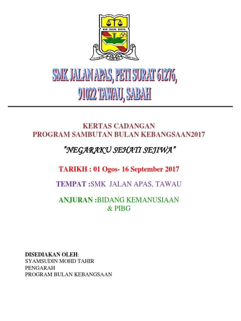 Kertas Kerja Sambutan Hari Kemerdekaan Peringkat Sekolah 2017 Edit Tentatif