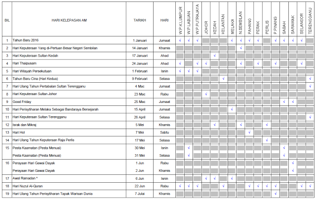 Kalendar Cuti Perlepasan Am 2016 Persatuan Guru Guru Sar Kafa Daerah Kuantan