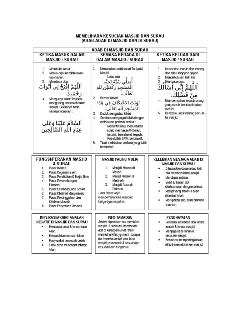 Akhlak Tingkatan 2 Memelihara Kesucian Masjid Dan Surau