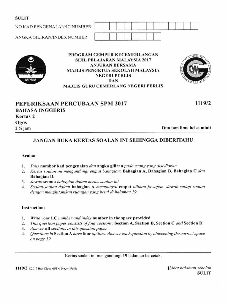 002 Perlis 2017 Spm Trial English 1119 P2 2 Pdf