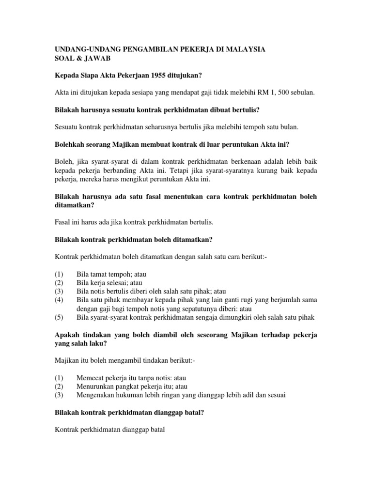 Undag Undang Pengambilan Pekerja Di Malaysia Verified