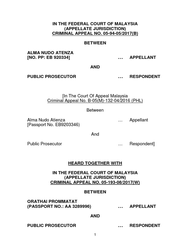 In The Court Of Appeal Malaysia Criminal Appeal No B 05 M 132 04 2016 Phl Between Alma Nudo Atienza Appellant Passport No Eb9203346 And Public Prosecutor Respondent Court Of Appeal Of Singapore