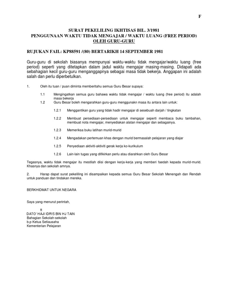 Pekeliling Penggunaan Waktu Tidak Mengajar Free Period Pendidik2u
