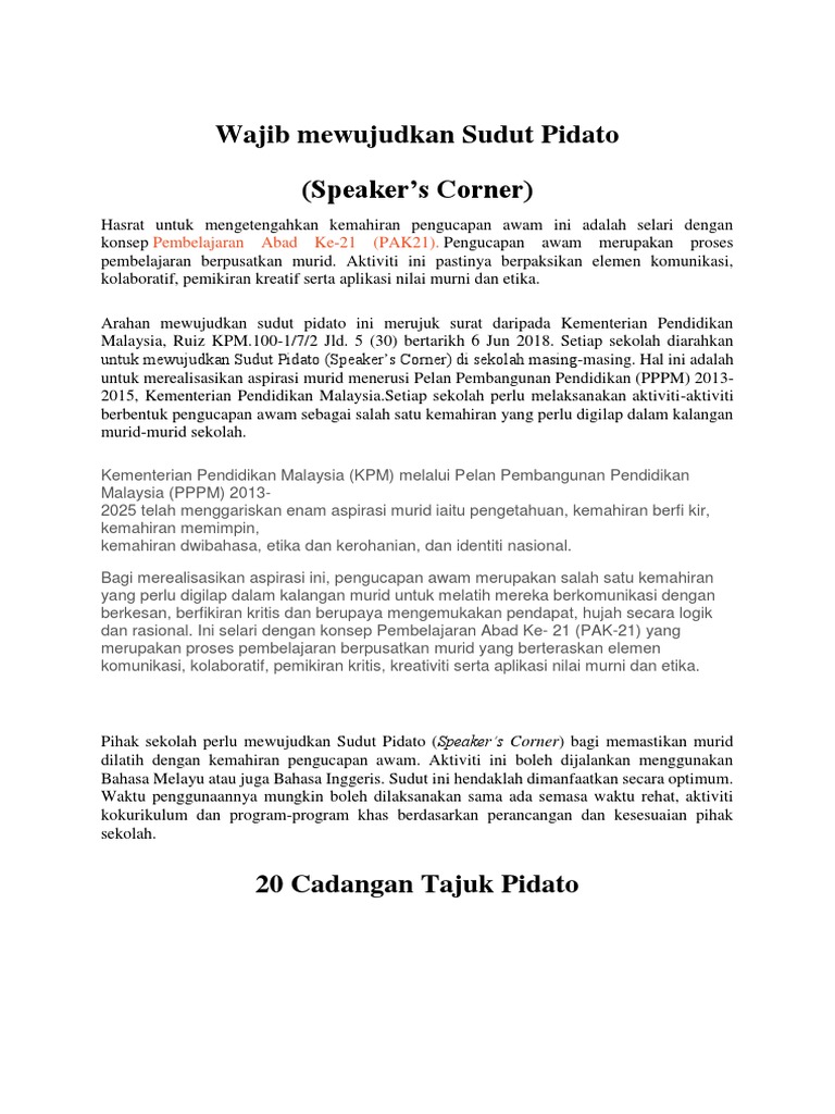 20 Tajuk Aktiviti Sudut Pidato Docx