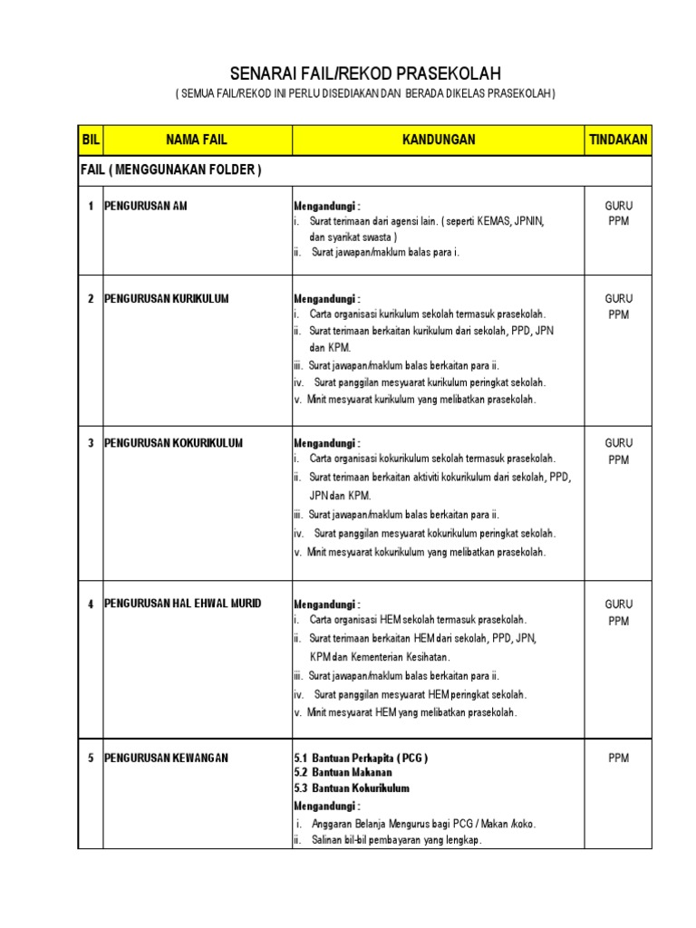 Senarai Dan Isi Kandungan Fail Prasekolah Pptx