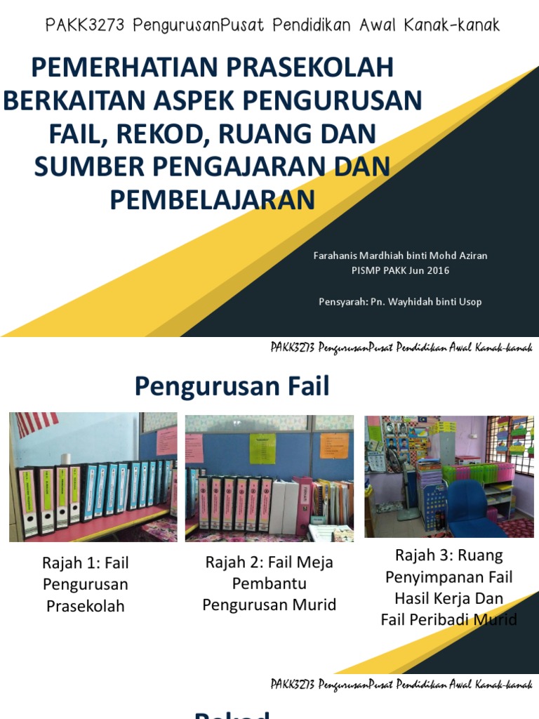 Pengurusan Fail Di Kelas Prasekolah Pahang 2013