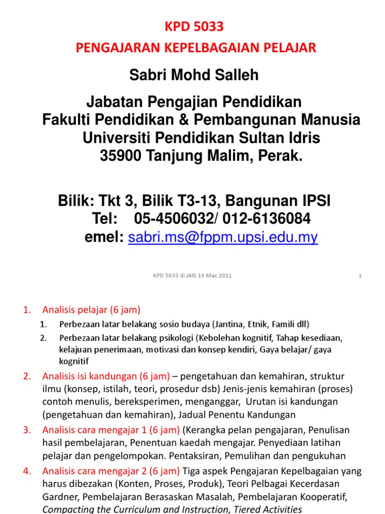 19 Mac 2011 Kuliah 2 Kpd 5033 Di Jais A Pps 1