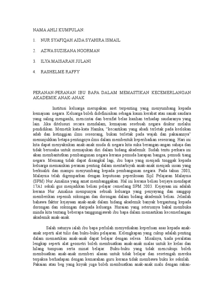 Doc Peranan Ibubapa Dalam Pendidikan Anak Anak Zainal Ariffin Academia Edu