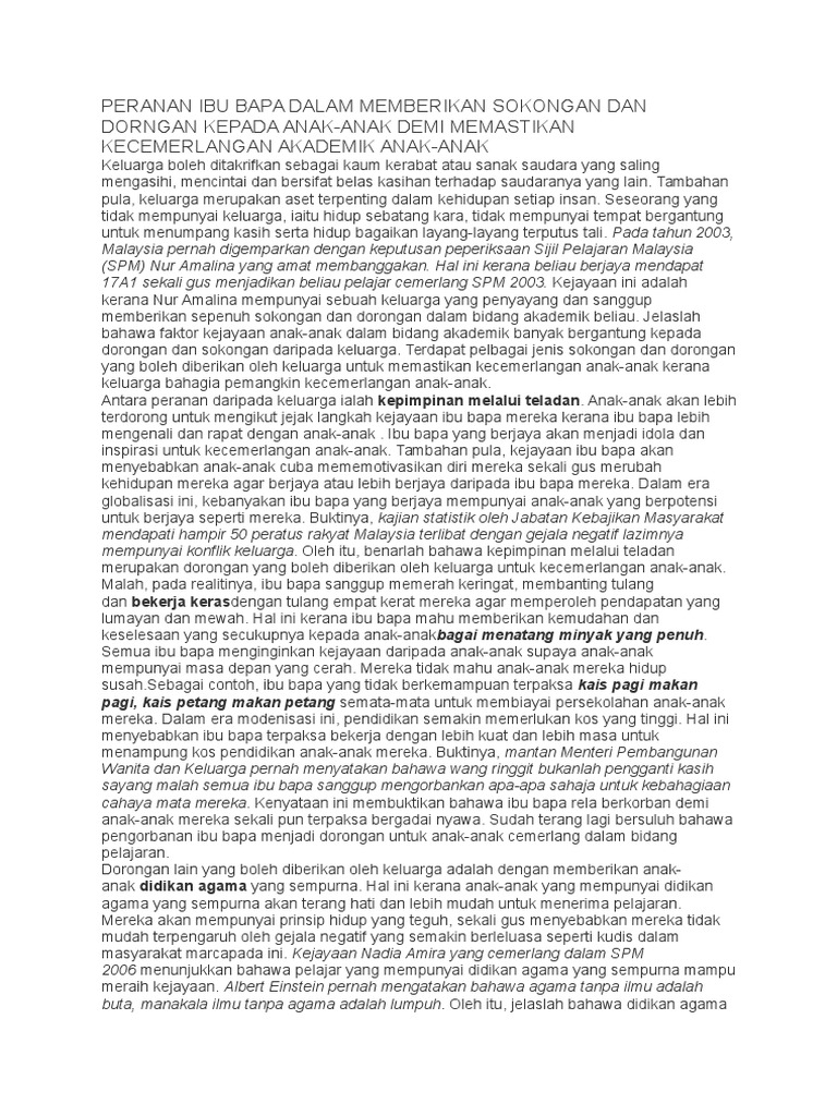 Peranan Ibu Bapa Dalam Memberikan Sokongan Dan Dorngan Kepada Anak Anak Demi Memastikan Kecemerlangan Akademik Anak Anak