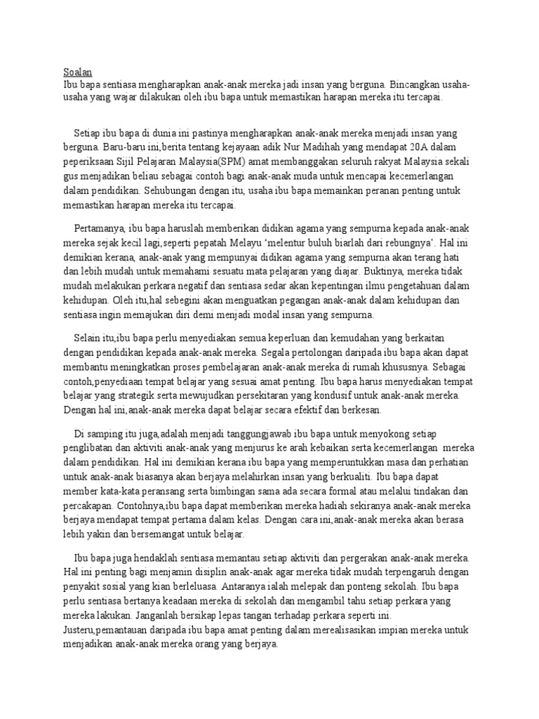 Karangan Peranan Ibu Bapa Menggalakkan Aktiviti Kokurikulum