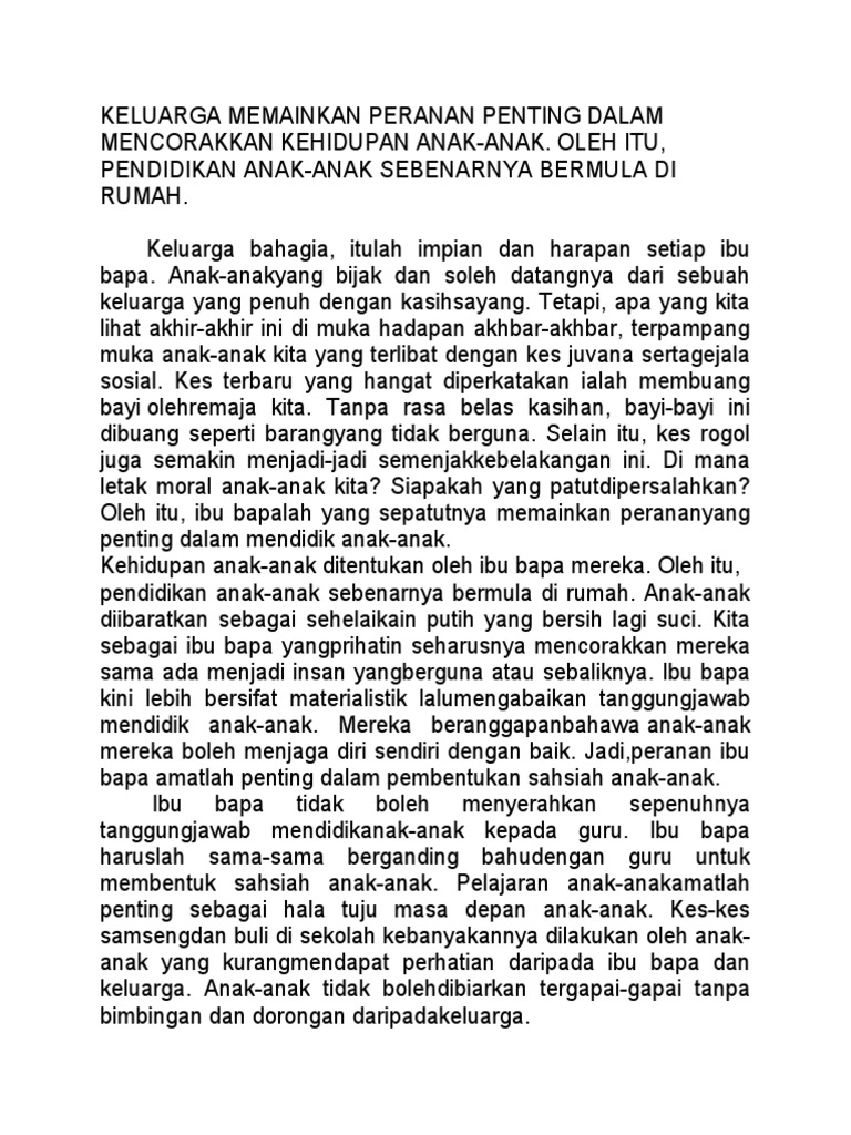 Contoh Karangan Spm Peranan Keluarga Dalam Pembentukan Sahsiah Anak