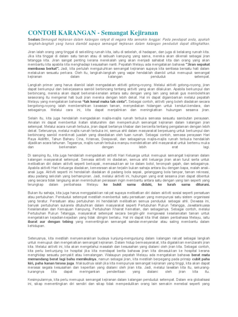 Karangan Bm Spm Usaha Memupuk Semangat Kejiranan Dalam Kalangan Remaja
