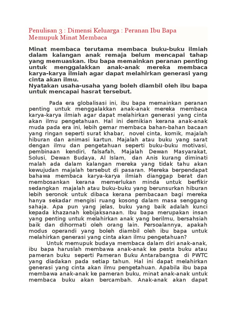 Peranan Ibu Bapa Dalam Memupuk Semangat Membaca Dalam Kalangan Remaja
