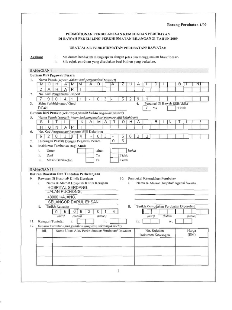 Jabatan Perkhidmatan Awam Arahan Bahagian I Borang Perubatan 1 09 Permohonan Perbelanjaan Kemudahan Perubatan Di Bawah Pekeliling Perkhidmatan Bilangan 21 Tahun 2009 Pdf Document