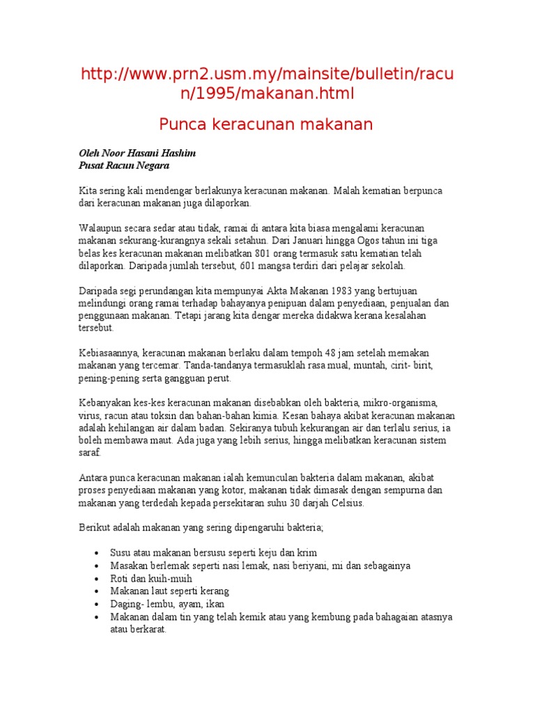 N 1995 Makanan Html Punca Keracunan Makanan Oleh Noor Hasani Hashim Pusat Racun Negara