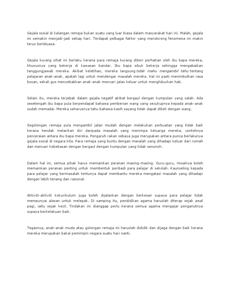 Doc Masalah Sosial Dikalangan Remaja Adalah Berpunca Daripada Hubungan Ibu Bapa Dengan Remaja Ben Siddiq Academia Edu