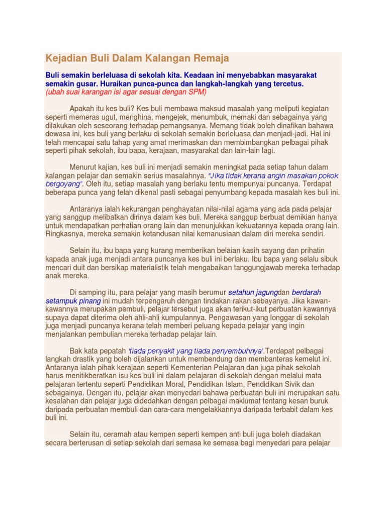 Kejadian Buli Dalam Kalangan Remaja Pertanyaan Integritas